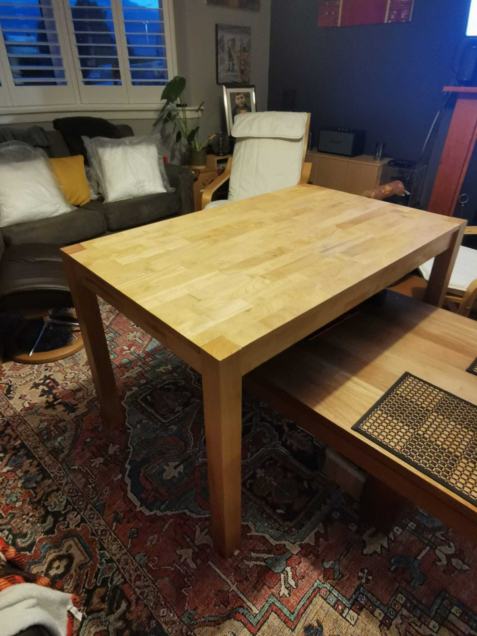 Free solid.wood table, excellent condition. H75cm, W75cm, L120cm. Must be picked up Saturday or Sunday otherwise going to community hub at recycling centre.