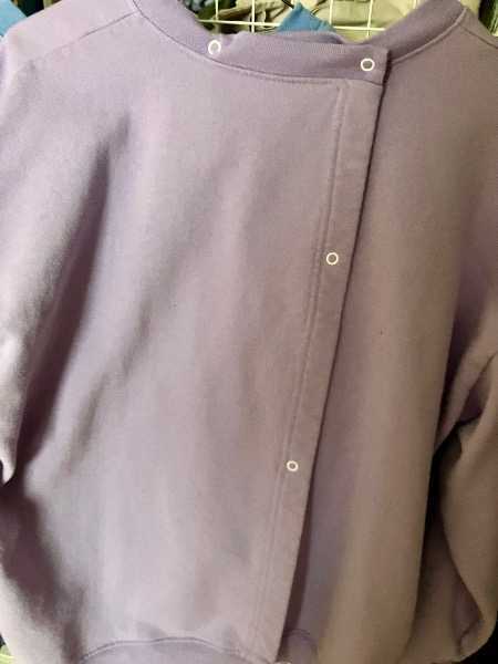 We have several tops that have been adapted for easy dressing of handicapped individuals. Opening at the back, they snap at the shoulders and up the back. Three are shown in the pic ... more will be included. In good used condition with no stains. From a smoke free, pet free home.