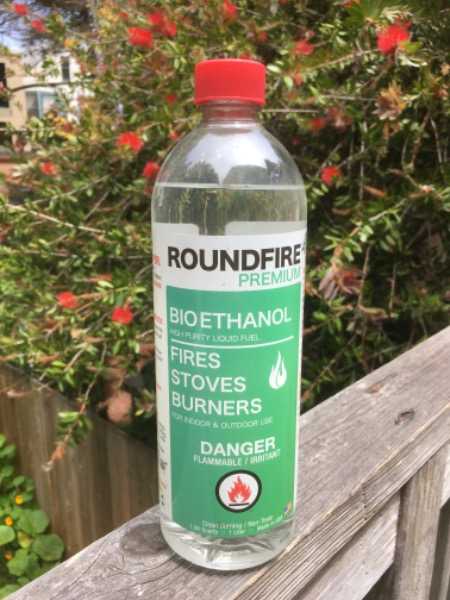 Three unopened liter bottles of Roundfire Premium Bioethanol Fuel for camp stoves, etc.