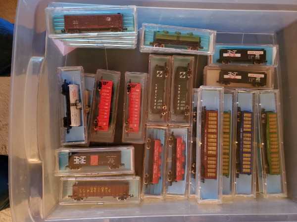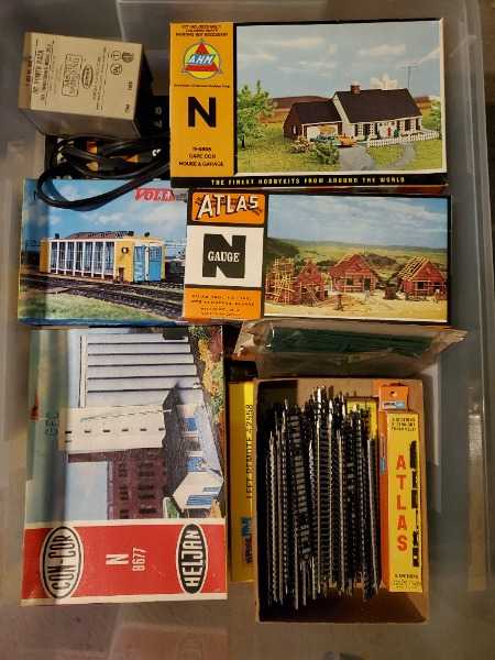 trains. they are the small size N gauge trains. and some tracks this is only a sample of what I have to offer. These are great for collectors, shelf decoration, decluttering and downsizing. most of them are still in original package