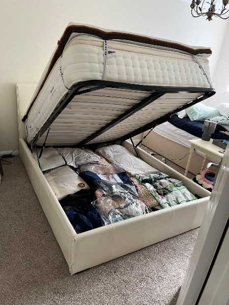 Double Bed with storage and Silent Night mattress and mattress topper
