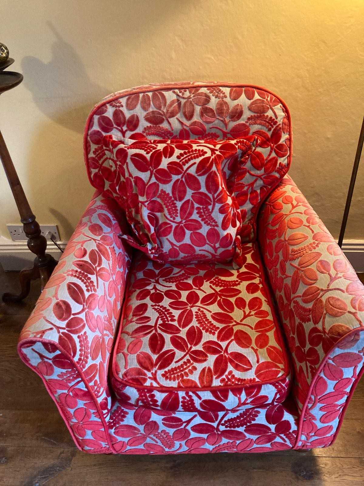Super comfortable but has some sun damage on the arm.  Fabric is beautiful velvety.