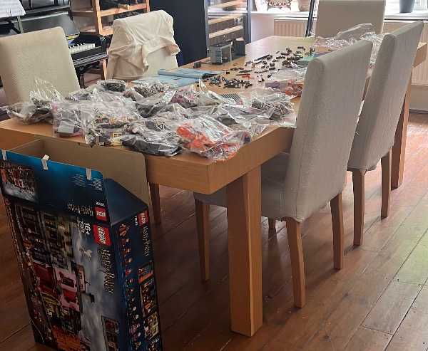 Extendable dining table, 20 years old but good condition. Seats 6, 8 or 12 with 2 options on the extension. It has been dismantled so the picture is the only one I could find (LEGO not included!).