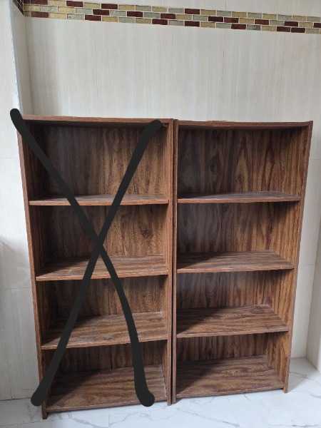 1 book case - 4 shelves unit. 54"H x 24"W x 9.5"D. 1 taken, the other one available. Take from a 2nd story unit.