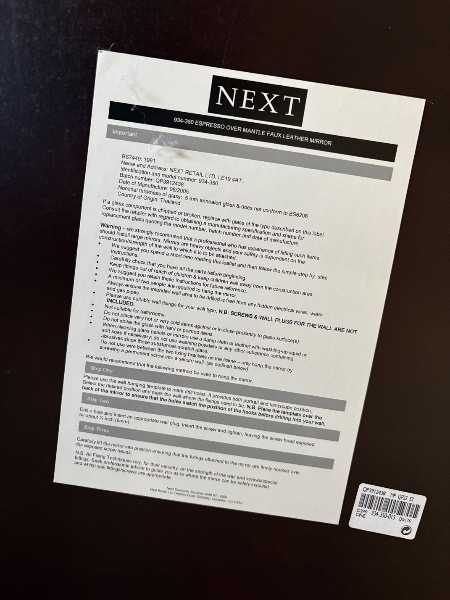 Large mirror by NEXT 90cm x 110 cm