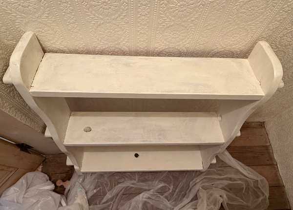 Pine shelves. Approximately 30x 30 inches. These have had to be removed due to fitting other things into the space. They have had a first paint over and would benefit from an overcoat. Fittings included.