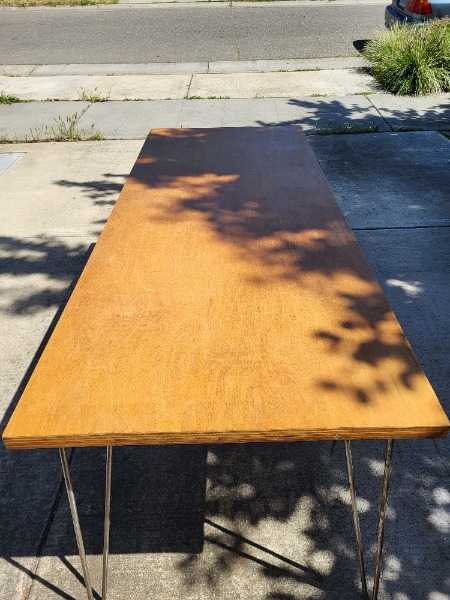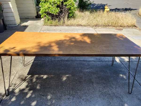 This has been a great desk and kitchen table for me for the last decade. It is hand made by a guy in Sacramento who works with kids to do the metal work. Pretty cool. It is 80" x 32". Please text me at 510 701 4497.