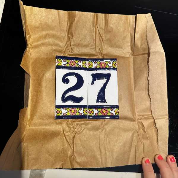 Two ceramic house tiles with navy blue numbers. Never used, bought in Spain. Useful if you live at no. 2, 7, 27 or 72! :-)